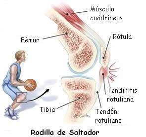 La tendinopatía rotuliana o rodilla del saltador es una patología frecuente en jugadores de voleibol, tenis y baloncesto, los que exigen una gran cantidad de saltos a los deportistas. El salto hay que tener en cuenta que provoca que las rodillas puedan llegar a soportar hasta 10 veces el peso de la persona que lo realiza. La patología consiste en un dolor general por debajo de la rótula provocado por una inflamación del tendón rotuliano que conecta la rótula con el hueso de tibia.